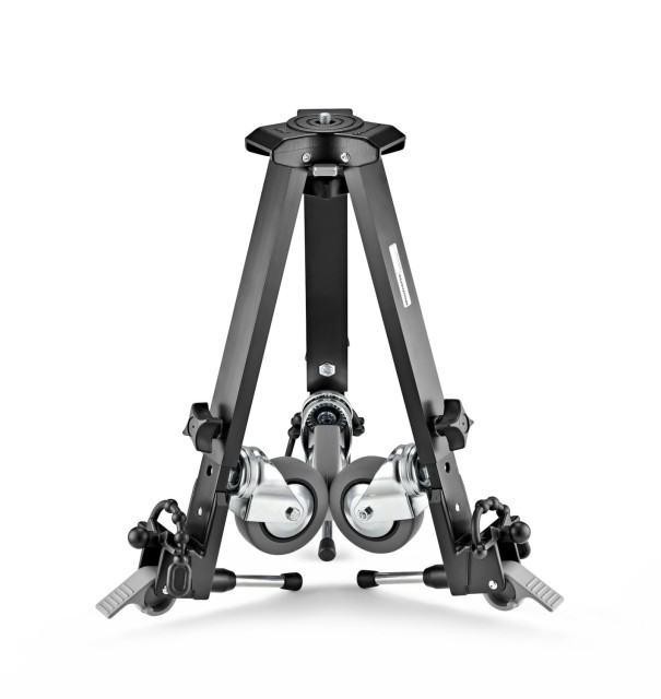 Manfrotto MDOLLYVR Virtual Reality Adjustable Dolly je gladko drseča, stabilna mobilna podlaga, zasnovana za virtualne oglede in 360° slikanje, ki ponuja nastavljivo širino stopal, velika kolesa z zavoro in odlično stabilnost za lahke do srednje težke stative.