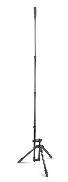 Manfrotto MTALUVR je robusten, a lahek 4-delni aluminijasti stativ, posebej zasnovan za 360° in VR fotografijo, ki podpira do 7 kg (15,4 lb) bodisi neposredno na svojem podaljšljivem sredinskem stebru bodisi prek priloženih stranskih sponk, ki varno držijo ločeno kupljen podaljšek za višje posnetke nad glavo.