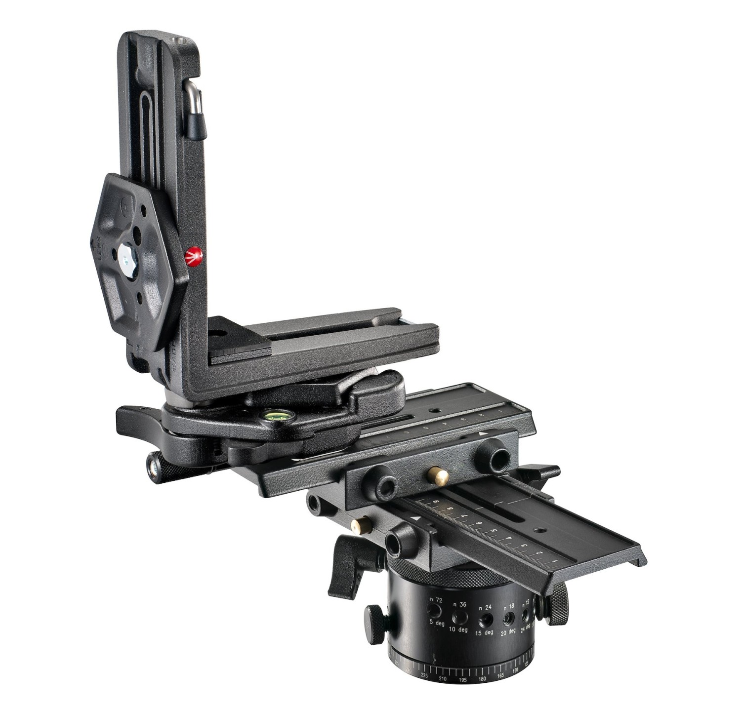 Manfrotto MH057A5 je profesionalna glava za virtualno realnost in panoramsko fotografijo, zasnovana na legendarni rotacijski enoti 300N, opremljena z drsnimi vodoravnimi in navpičnimi ploščami z lasersko graviranimi lestvicami za natančno poravnavo vozlišča, hitro snemljivim kolenskim nosilcem za takojšnjo orientacijo v pokončni položaj in 360° premikanjem brez zaskočkov.