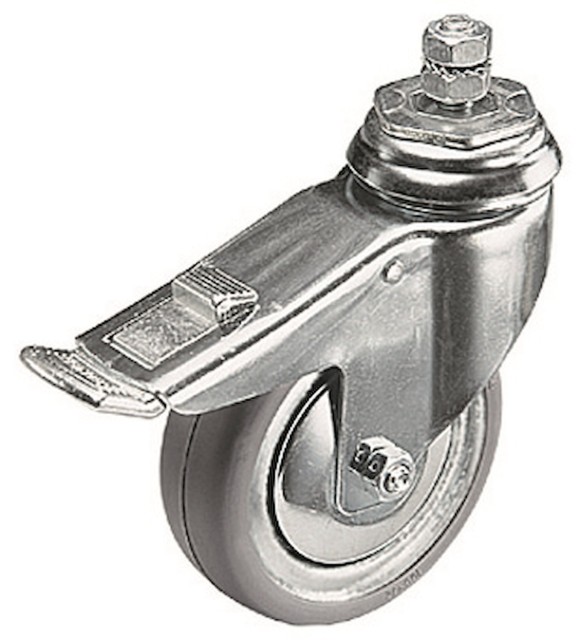Komplet koles Manfrotto 104G spremeni vsako svetilo z navojem M10 ali stojalo C v natančno mobilno platformo. Vsako 100-milimetrsko sivo poliuretansko kolo ima zatesnjena ležaja za tiho drsenje in z nogo aktivirano zavoro, ki se takoj zaklene z enim samim korakom. Jeklene sornike M10×1,5 se varno privijejo s priloženimi zaklepnimi maticami, pri čemer se višina poveča le za 130 mm. So primerni za 100 kg porazdeljene obremenitve in so zlati standard za premikanje HMI, volframovih ali velikih LED-svetilk v filmskih, televizijskih ali fotografskih studijih, saj zagotavljajo hitro, varno in tiho premikanje brez razlaganja opreme.