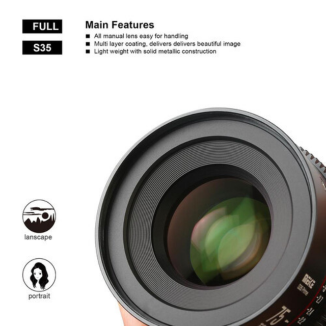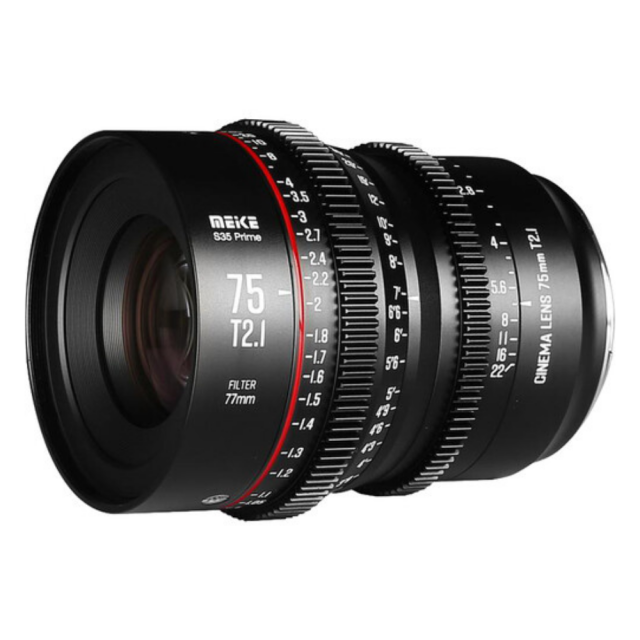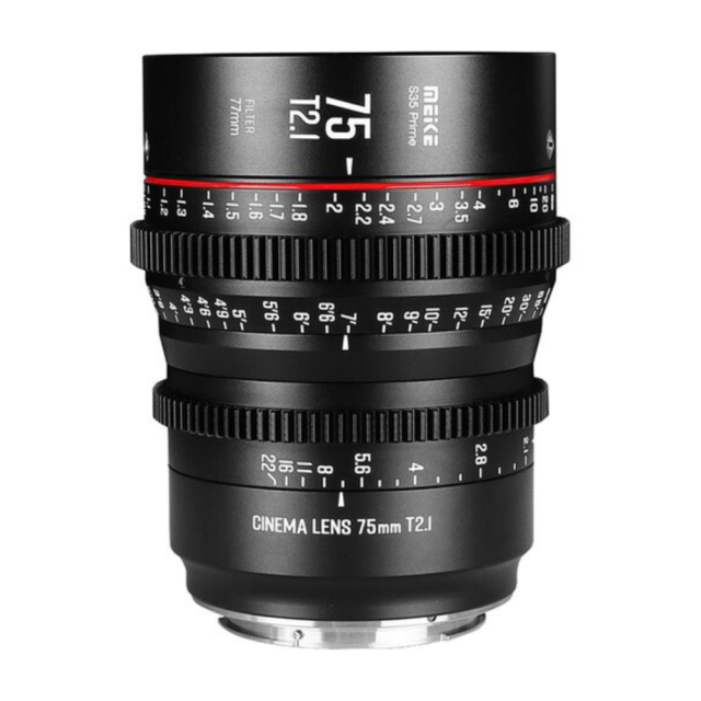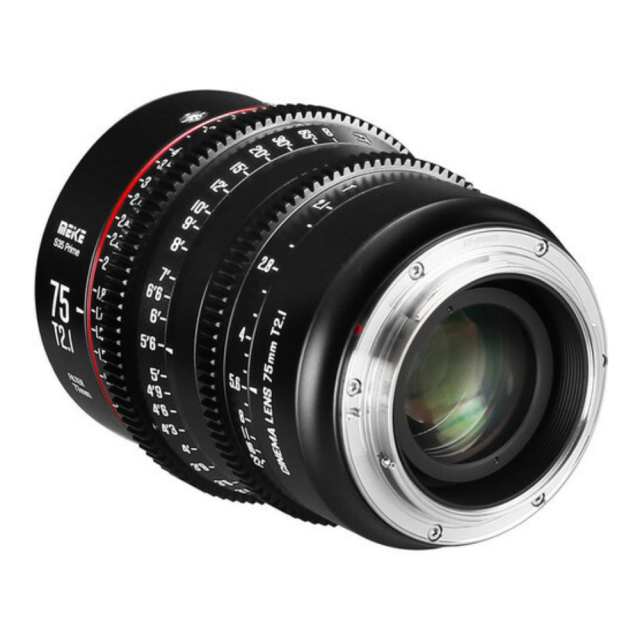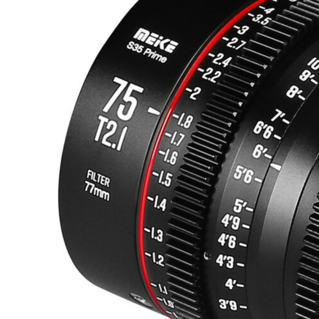 Meikejev tretji objektiv za kinematografski film v seriji Super35-Prime Cine Lens: Meike 75 mm T2.1 Ta objektiv s 33,6 mm slikovnim krogom je združljiv s fotoaparati Super 35 in bo na voljo z dvema bajonetoma, PL/EF.Ta objektiv je eden od Meikejevih objektivov za kinematografski film v novi seriji Super35-Prime Cine Lens.Ima standardne 0,8 mm zobnike na obročih za ostrenje in zaslonko.