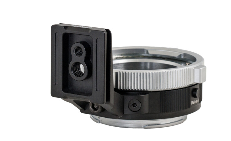 Flokirana notranjost zmanjšuje notranje odboje in bleščanje, kar zagotavlja maksimalno optično zmogljivost. Neskončni fokus je v celoti ohranjen, satinirana površina pa se ujema z videzom in občutkom sodobnih ohišij fotoaparatov. Adapter je opremljen s snemljivo nogo za stativ tipa Arca za hitro in prilagodljivo namestitev na stativ, kar ga naredi idealnega za delo v studiu, na lokaciji ali iz zraka.