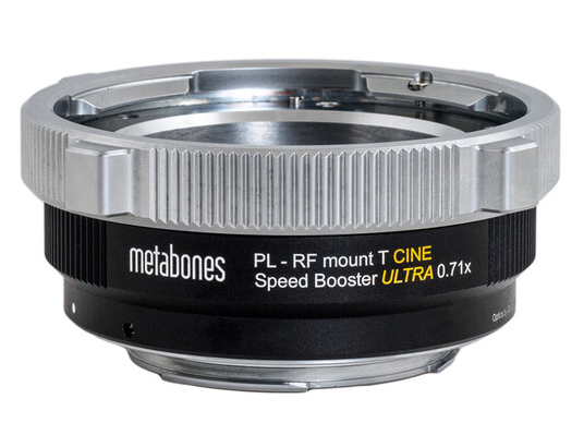 Metabones PL–Canon RF-Mount T Cine Speed Booster ULTRA 0,71x omogoča namestitev objektivov ARRI PL na kamere Canon RF, pri čemer razširi vidno polje za 0,71-krat in poveča največjo zaslonko za 1 stopnjo. Natančno izdelan iz aluminijeve zlitine in medenine, ima napredno optiko, notranjo oblogo iz filca za zmanjšanje odboja svetlobe ter snemljivo stojalo tipa Arca.