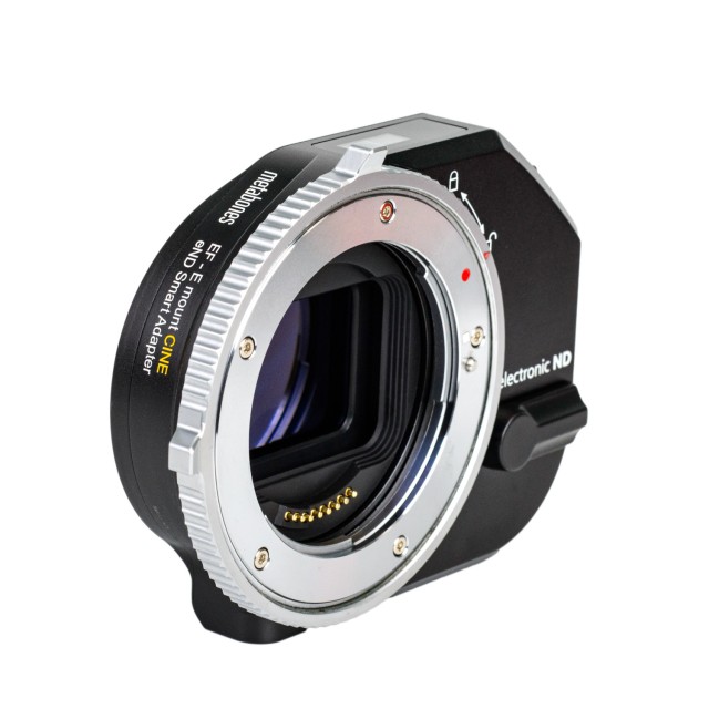 Pametni adapter Metabones Canon EF na E-mount CINE eND (Black Matt) prinaša moč naprednega elektronskega nadzora in vgrajenega spremenljivega filtra ND na Sonyjeve fotoaparate z E-mountom. Adapter je zasnovan za profesionalne filmske ustvarjalce in fotografe, saj podpira samodejno ostrenje, stabilizacijo slike in gladke prehode zaslonke, notranji sistem ND-filtrov pa zagotavlja prilagodljiv nadzor osvetlitve brez potrebe po zunanji opremi.
