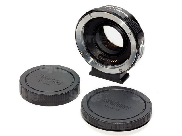 Metabonesov ojačevalnik hitrosti EF na Sony E-mount omogoča uporabo objektivov EF na Sonyjevih fotoaparatih z E-mountom. Poveča zorni kot in svetlost objektiva za 1 številko zaslonke.