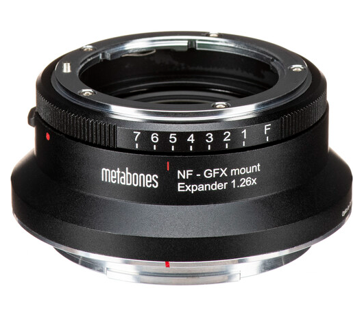 Metabonesov razširjevalnik 1,26x za objektive Nikon s F-priključkom tipa G za fotoaparate FUJIFILM GFX s G-priključkom je namenjen profesionalnim fotografom, ki želijo objektiv Nikon F s polnim formatom prilagoditi za srednjeformatne fotoaparate GFX. Ta adapter poveča projicirano sliko iz Nikonovega objektiva za 1,26-krat, s čimer prepreči vinjetiranje in poveča vidni zorni kot na senzorju GFX.