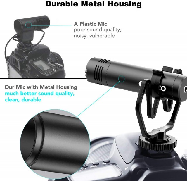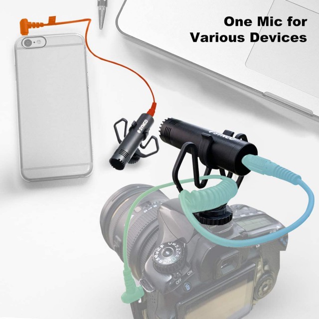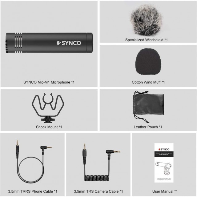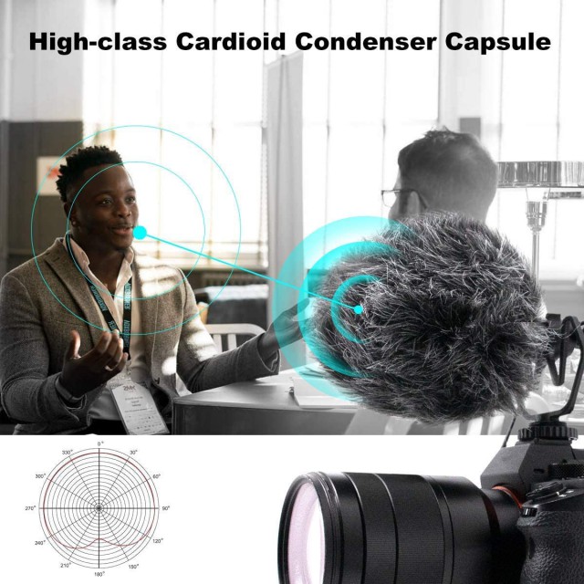 Namenski elektretni kardioidni mikrofon za kamero DSLR/DSLM ima izhod TRS/TRRS 3,5 mm, oblazinjen nastavek z nogo za strele in miniaturno velikost 22 × 81 mm ter težo le 26 g! S/N 76 dB, občutljivost -42 dB@1 kHz.