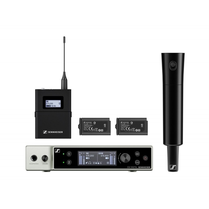 Ročni oddajnik SKM je združljiv z mikrofoni Sennheiser MMD, MME, MMK, KK in MM ter je opremljen s stikalom MUTE za hitro utišanje mikrofona. Žepni oddajnik SK ima 3,5-mm priključek za priključitev različnih mikrofonov za ovratnik ali glavo. Oba oddajnika uporabljata polnilne baterije BA 70, ki zagotavljajo do 12 ur delovanja, ali pa delujeta s standardnimi AA baterijami za približno 8 ur.