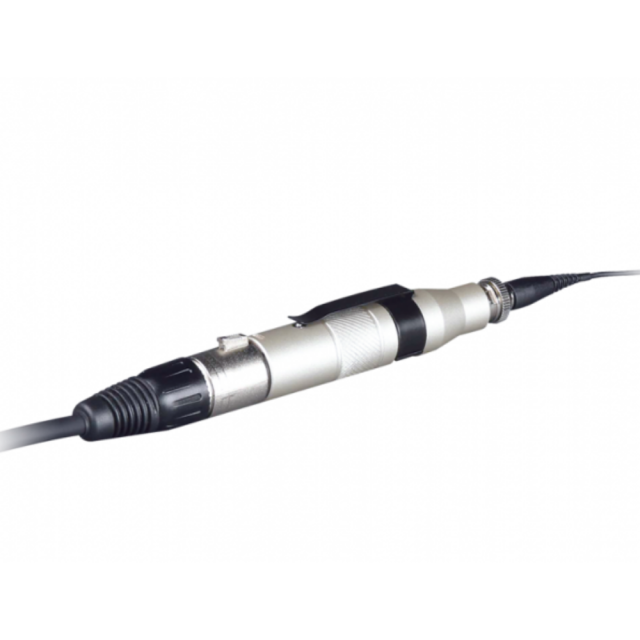 Uravnotežena izhodna moč pretvarja visoko izhodno impedanco kondenzatorskega mikrofona v širok frekvenčni odziv, visok dinamični razpon, visoko razmerje S/N in nizko izhodno impedanco pri približno 200 Ω. Preprečuje motnje šuma pri prenosu na dolge razdalje. Robustno kovinsko ohišje zagotavlja dolgo življenjsko dobo, pasni klip pa omogoča enostavno nošenje.