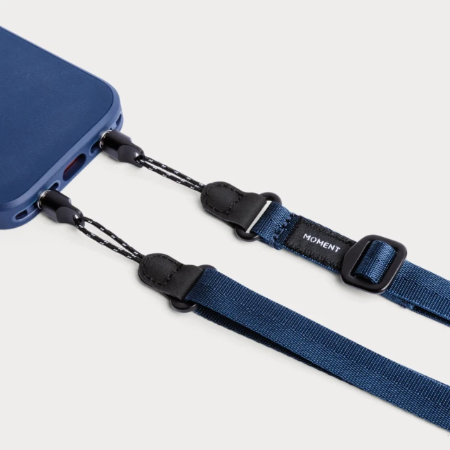 Nastavljivi trakovi za telefon Moment držijo vaš telefon blizu in varno med fotografiranjem, vožnjo v službo ali pa samo med sprehodom po mestu. Izdelani so iz vojaškega najlona in trpežnih aluminijastih komponent, zaradi česar so lahki, trpežni in udobni za nošenje. Barva: indigo modra.