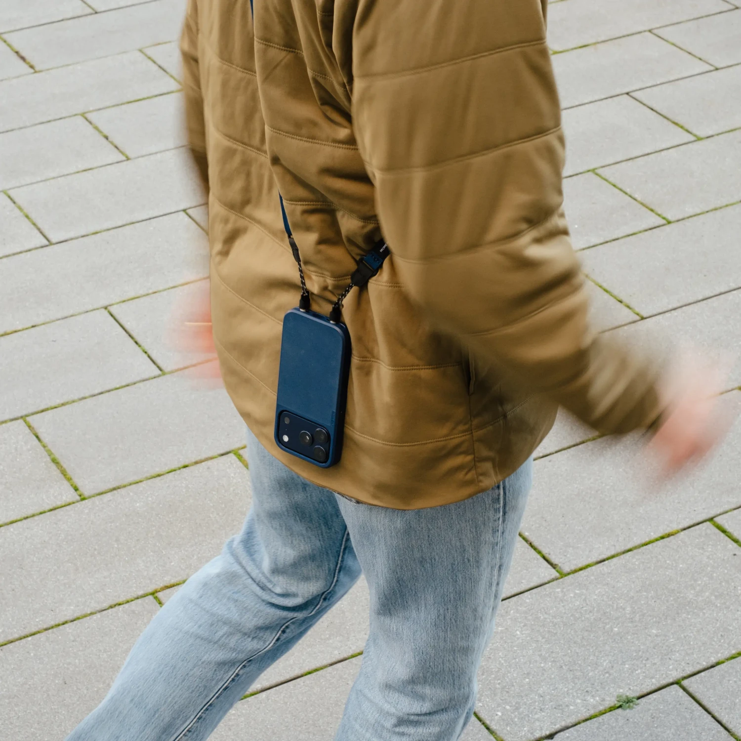 Pas se pritrdi neposredno na pritrdilno točko, vgrajeno v vsak Moment ovitek za iPhone 17 (razen različice Air), kar ustvari neposredno povezavo z vašim telefonom – ne le z ovitkom. Brez plastičnih karabink ali šibkih točk, samo preprosta vrvica, ki se varno navije in ostane na mestu, ne glede na to, kako aktiven ste.