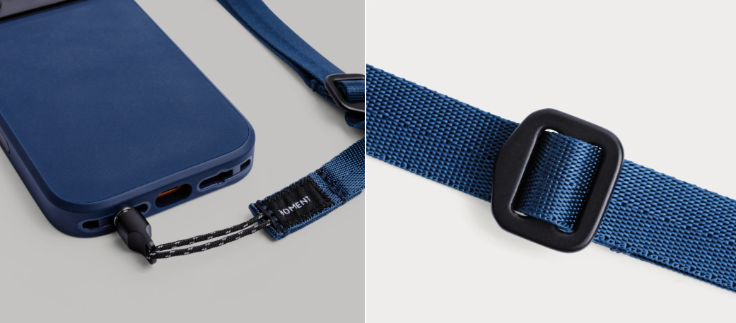 Pas ponuja dva načina pritrditve: uporabite univerzalna pritrdilna mesta za paracord za katero koli torbico za telefon ali pa konektorje QuickLink za neposredno pritrditev na torbice Moment Camera Cases za iPhone 17 (razen modela 17 Air). Njegova tanka zanka za vrvico deluje tudi univerzalno z drugimi napravami, ki imajo kavlje, režo za vrvico ali pritrdilno točko. Ta trak, ki je pokrit z doživljenjsko garancijo Moment, zagotavlja dolgotrajno vzdržljivost in udobje za fotografe, popotnike in vse, ki so veliko na poti.