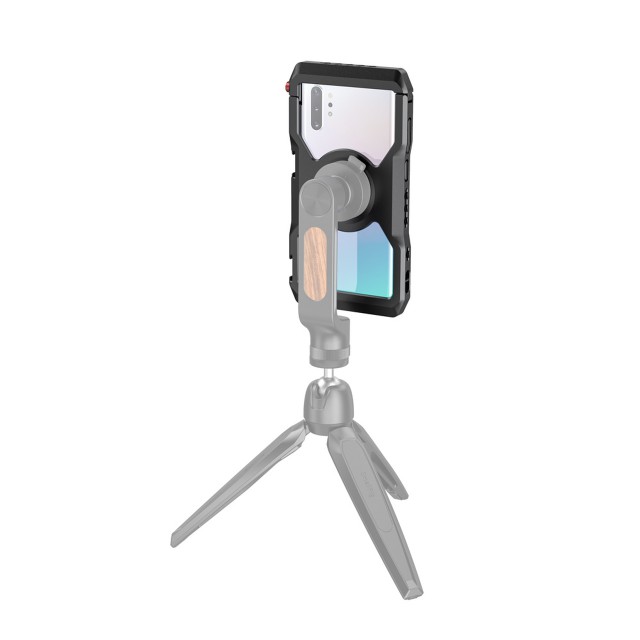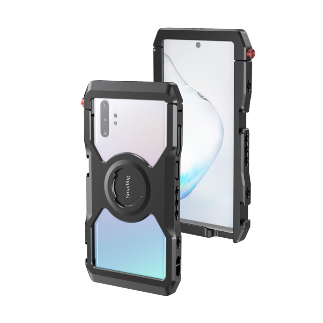 SmallRig Samsung NOTE10+CAGE Professional Edition CPS2454 je zasnovan tako, da ščiti vaš Samsung note10+ in omogoča dostop do priključitve dodatne dodatne opreme za mobilno fotografiranje in snemanje videoposnetkov, prenos v živo, intervjuje, vloganje itd. Opremljen je z dvema hladnima čevljema in več luknjami z navojem 1/4"-20 za namestitev različnih dodatkov, kot so mikrofon, luč LED, stativ itd. ter podpira tako vodoravno kot navpično snemanje. Združljiv je z aluminijastim stranskim ročajem SmallRig za kletko za pametne telefone HSS2424 za snemanje iz roke in kabelsko objemko SmallRig za kletko za mobilni telefon BSC2390 za pritrditev kabla med snemanjem. Vgrajene gumijaste blazinice blažijo udarce in preprečujejo praske na telefonu. Ima tudi odprtino za zapestno vrvico. S hitrim odpiranjem in zapiranjem lahko kletko hitro odprete in zaprete.