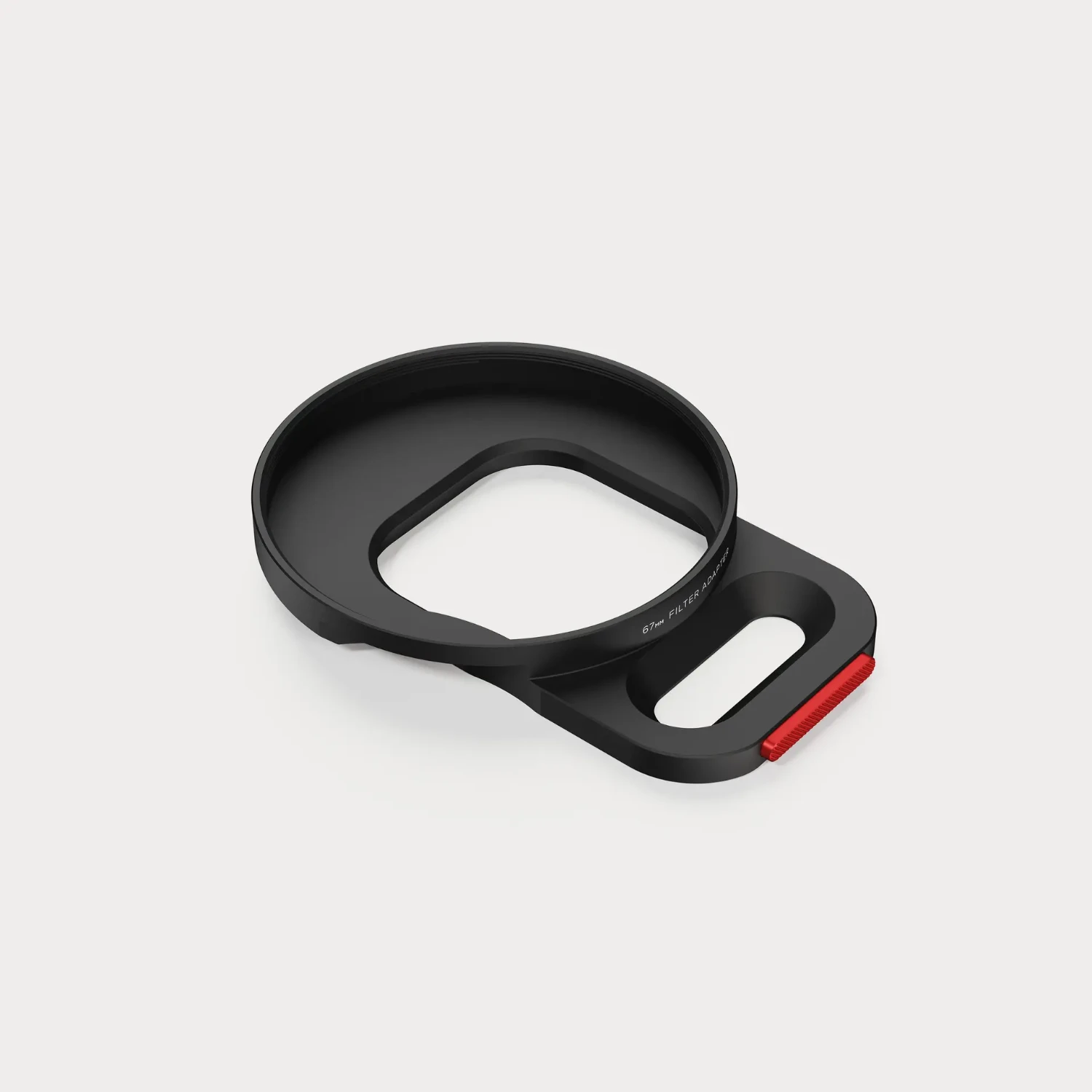 S 67-milimetrskim nosilcem za filtre QuickLock lahko kateri koli standardni 67-milimetrski filter namestite neposredno na kamere vašega iPhone 17 Pro. Nosilec je zasnovan izključno za uporabo z Moment Camera Case in uporablja naš sistem QuickLock™ za pritisk in zaklepanje, ki omogoča najhitrejši in najvarnejši način namestitve vaših najljubših ND, CPL, difuzijskih ali posebnih filtrov na vaš telefon.