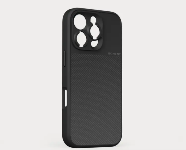 Ohišje Moment za iPhone 16 Pro - črno: S telefonom združljivo ohišje MagSafe s funkcionalnostjo profesionalne kamere in izboljšano zaščito za fotografe.