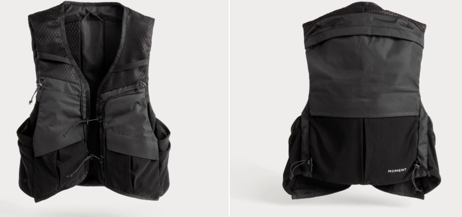 Nahrbtnik Moment Exposure 10L Vest, zasnovan za fotografe, ki so vedno na poti, združuje funkcionalnost nahrbtnika z mobilnostjo jopice. Navdihnjen z jopicami za tek in ribolov, se tesno prilega telesu in preprečuje poskakovanje, pri čemer teža enakomerno porazdeljena po sprednji, zadnji in stranskih straneh.