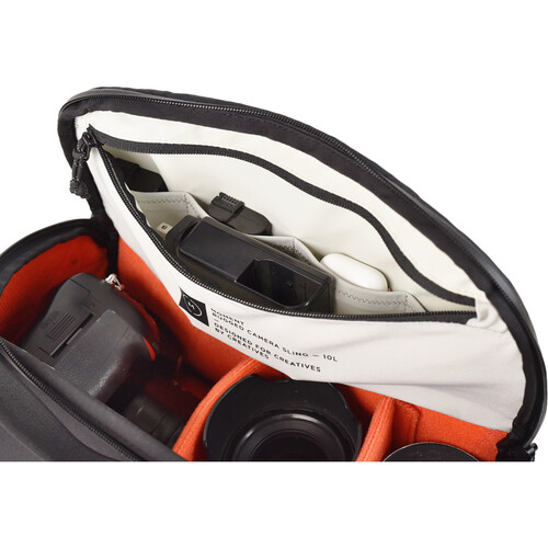 Materiali Bomber in trpežno oblazinjenje ščitijo vašo opremo na zunanji strani. V notranjosti je veliko žepov in prilagodljivih razdelilnikov, ki poskrbijo za vašo organiziranost. Stabilni trak poskrbi, da je med premikanjem, fotografiranjem in celo pohodništvom vaša zanka tesno pritrjena. Njegova pravokotna oblika pa povečuje količino opreme, ki jo lahko vanj spravite. To je večnamenska zanka za desničarje in levičarje, ki ji zaupate, da bo ostala trpežna in udobna ne glede na razmere.