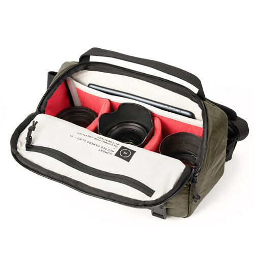 Vzdržljiv in udoben trak za fotoaparat za najbolj aktivne dni. Materiali Bomber in trpežno oblazinjenje ščitijo vašo opremo na zunanji strani. Z veliko žepi in prilagodljivimi delilniki boste v notranjosti poskrbeli za urejenost. Zaradi stabilnega traku je trak varno pritrjen med gibanjem, fotografiranjem in celo pohodništvom. Medtem ko pravokotna oblika povečuje količino opreme, ki jo lahko sprejme, ukrivljena hrbtna plošča objema vaše telo. Ta trak je večsmeren za desničarje in levičarje, zato lahko zaupate, da bo ostal tesen in udoben ne glede na razmere.