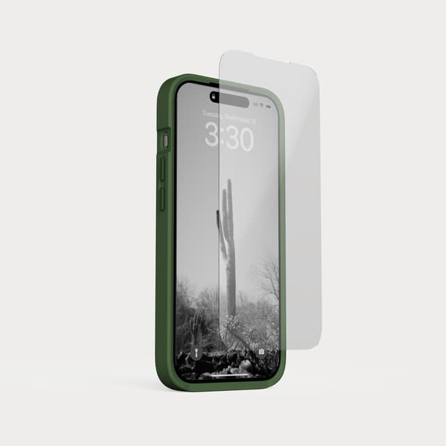Najboljša zaščita za zaslon v kombinaciji z ohišjem Moment Case za iPhone 15. Je trpežna, a lahka, kristalno čista in ne upočasnjuje delovanja zaslona.