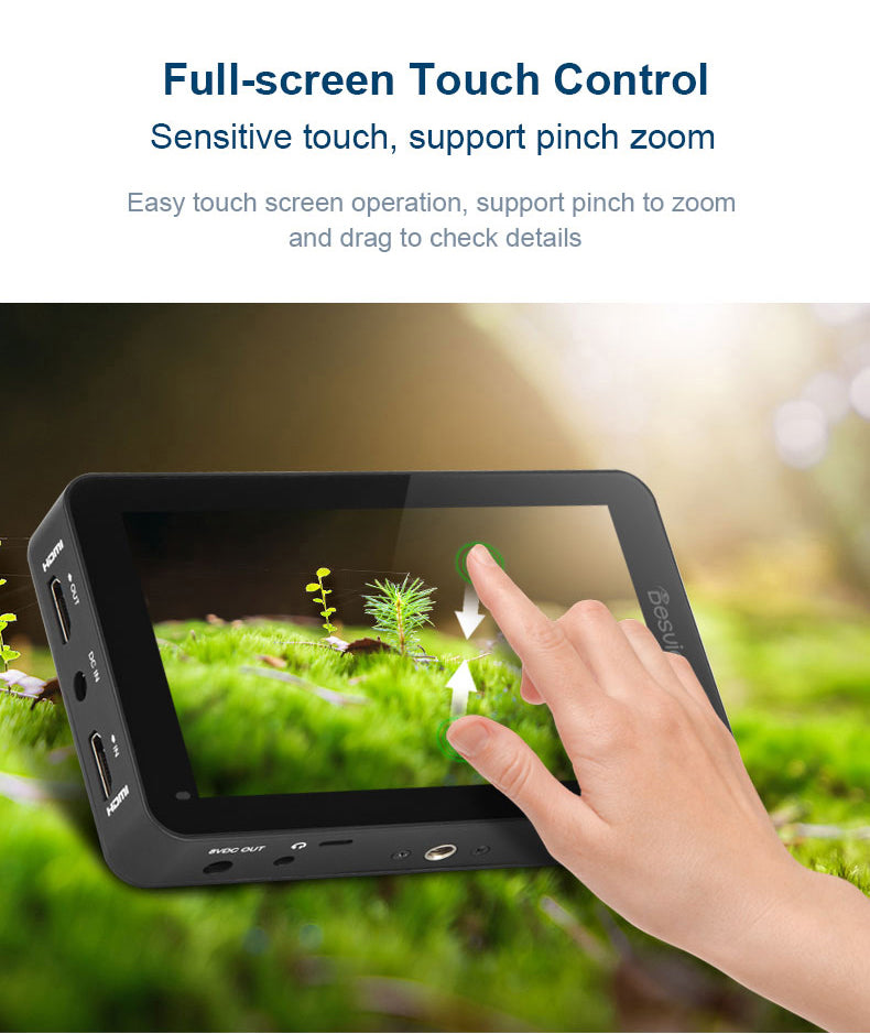 Monitor Desview R6 UHB z zaslonom na dotik ima izjemno visoko svetilnost 2800 nitov, kar zagotavlja svetlo in neodsevno sliko