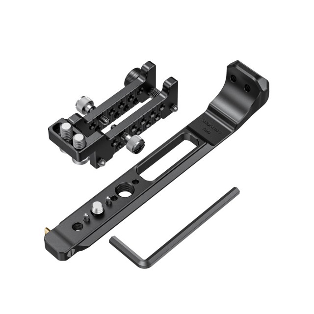 Ima vgrajeno tirnico NATO za hitro pritrditev in sprostitev pri uporabi z dodatno opremo z objemkami NATO, kot sta ročica s kroglično glavo SmallRig 2071, 2072 ali nosilec monitorja SmallRig 2205, BSE2385. Priložena objemka za kabel HDMI je pritrjena na stransko stran montažne plošče in pritrjuje kabel HDMI na mesto. Ta komplet je združljiv z originalnim Atomosovim senčnikom.