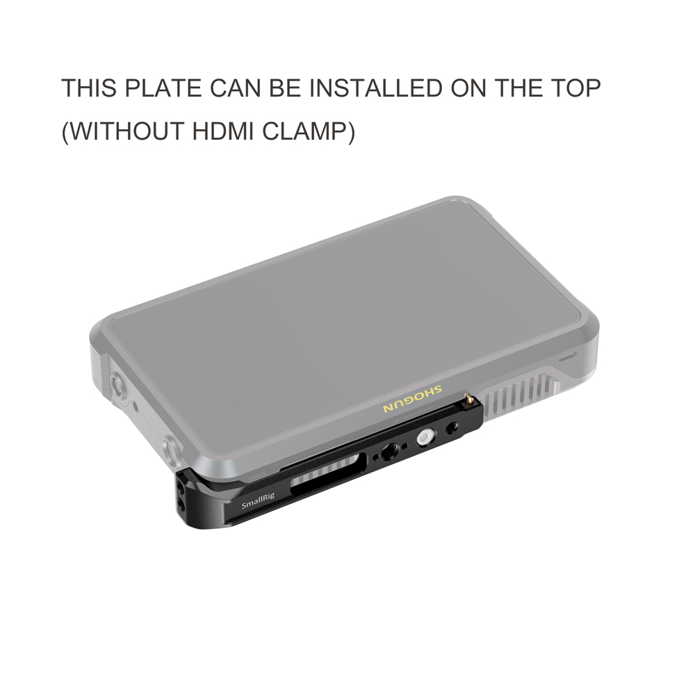 Montažna plošča SmallRig in objemka za kabel HDMI za Atomos Shogun 7 CMA2487 omogočata enostavno in varno pritrditev monitorja na komplet kamere. Plošča se pritrdi na spodnji del monitorja Shogun 7 s pomočjo priloženega vijaka 1/4"-20, položajni zatiči na plošči pa se ujemajo s položajnimi luknjami monitorja, da se plošča ne vrti