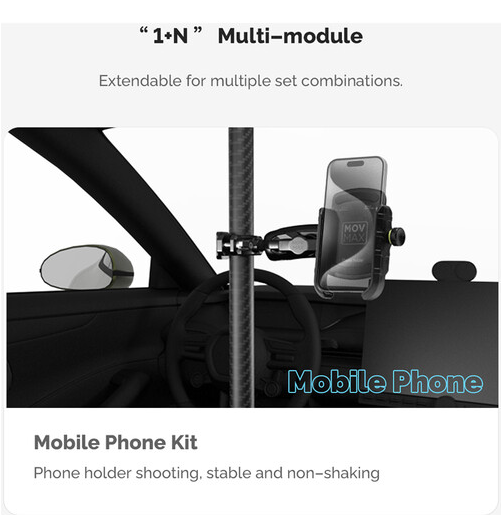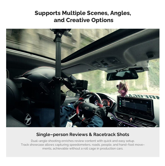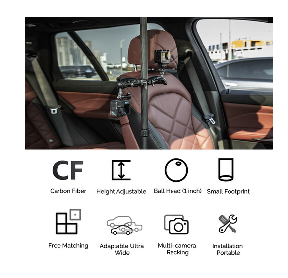 Nastavljiva teleskopska palica MOVMAX s 3-prstnim nosilcem omogoča varno snemanje z akcijo kamero v avtomobilu skozi vetrobransko steklo, razteza se od 2,5 do 4' z dvojnimi priseski za sončno streho in sredinsko konzolo, vključuje pa tudi 3-prstni adapter z glavo, dvojni nosilec in sponko za palico z glavo za vsestransko pozicioniranje.