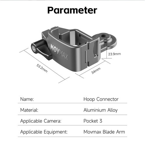 Svoj DJI Osmo Pocket 3 gimbal kamero lahko brez težav integrirate v sistem za pritrditev na avtomobil MOVMAX Blade Arm s pomočjo MOVMAX Blade Arm Hoop Connector, kompaktne sive aluminijaste sponke, ki se varno ovije okoli osnove ročaja Osmo z zaklepnim vijakom za hitro pritrditev, odporno proti vibracijam, kar omogoča dinamične posnetke iz vozila s profesionalno stabilnostjo.