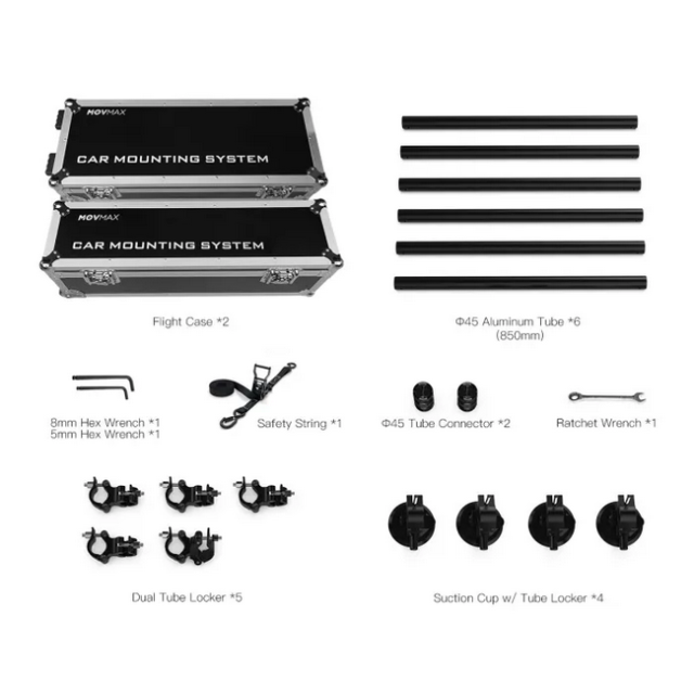 MOVMAX Φ45mm Car Mounting System Pro Kit je celovita in profesionalna rešitev za montažo, zasnovana posebej za varno namestitev kamer in opreme na vozila. Ta komplet vključuje robustne sestavne dele in dodatno opremo, prilagojene za zagotavljanje stabilnosti in varnosti med dinamičnim snemanjem z avtomobilom. Komplet MOVMAX Φ45mm Car Mounting System Pro Kit, ki je idealen za profesionalne snemalce in videografe, zagotavlja zanesljivo podporo in vsestranskost ter snemalcem omogoča zanesljivo in natančno snemanje visokokakovostnih posnetkov iz edinstvenih in zahtevnih kotov.