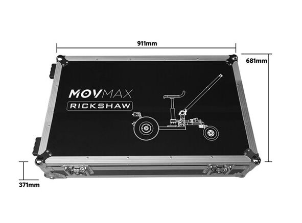 MOVMAX Flight Case za terensko rikšo je robustna, vodoodporna črna trda transportna rešitev z vgrajenimi kolesi in varovalnimi zapahi, zasnovana za varno shranjevanje in mobilizacijo vseh modularnih komponent sistema rikše v prostornem praznem notranjem prostoru velikosti 35,9 x 26,8 x 14,6 palca, zaščitenem s trajno konstrukcijo iz vezanega lesa.