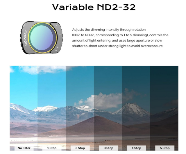 Sada magnetických filtrů MOVMAX pro DJI Osmo Pocket 3 Creator Combo obsahuje variabilní filtr ND2-32 (1–5 clonových stupňů), otočný filtr CPL a difuzní filtr Black Mist 1/4 – všechny se magnetickým uchycením pro okamžité použití – plus ochrannou fólii na LCD displej, které zajišťují filmovou kontrolu, jas bez odlesků a snové efekty zjemnění pleti v dynamickém osvětlení bez nutnosti rekalibrace gimbalu.