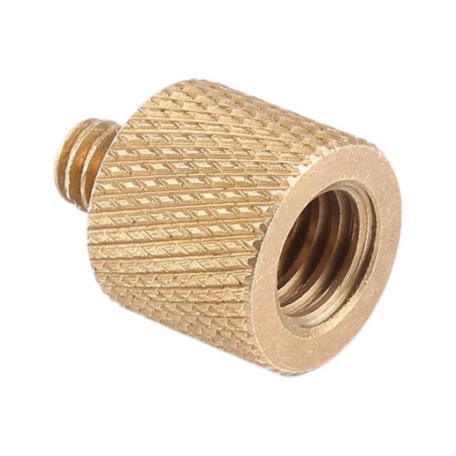 Pozlačena bakrena redukcija z navojem iz 3/8" na 1/4", primerna za pritrditev fotoaparatov, kamer, žepnih snemalnikov ali dodatnih nosilcev na mikrofonska in studijska stojala.