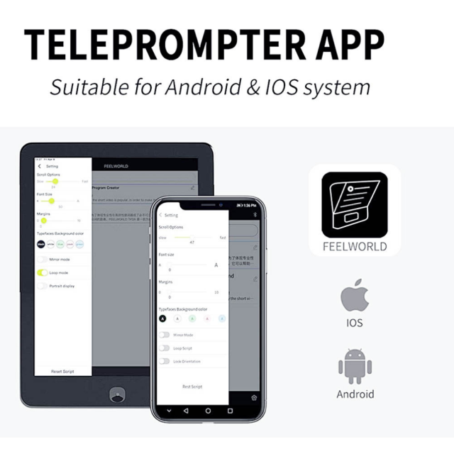 Univerzalna bralna naprava Feelworld TP13A podpira slikanje besedila s skoraj vsemi telefoni/tablicami (do 11") ter snemanje s telefoni in DSLR/DSLM zaradi pametne zasnove objemke in nastavljivega nastavka za kamero (razpon do 6 cm). Opremljen je tudi z odstranljivim svetlobnim senčilom iz blaga, obročki iz pene in daljinskim upravljalnikom Bluetooth, ki komunicira s priloženo aplikacijo za operacijski sistem Android/iOS.