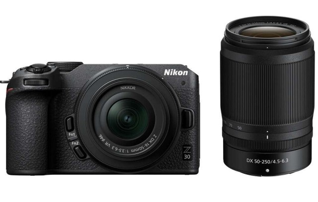 Ta komplet z dvema objektivoma z zoomom pokriva vse potrebne slikovne kote. Komplet vključuje brezzrcalni fotoaparat Z 30 in dva izvlečna objektiva z zoomom. Objektiv NIKKOR Z DX 16-50 mm f/3,5-6,3 VR vam omogoča, da brez menjave objektiva posnamete vse od širokokotnih posnetkov do portretov. Objektiv NIKKOR Z DX 50-250 mm f/4,5-6,3 VR ponuja kratke in dolge telefoto goriščne razdalje. Oba objektiva ostrita skoraj neslišno, zato sta idealna za snemanje videoposnetkov.