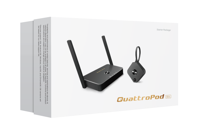 Z nizko zakasnitvijo, visokokakovostnim video izhodom, sodelovanjem več uporabnikov in varnim brezžičnim prenosom je QuattroPod Mini 1T1R popoln za sejne sobe, učilnice in konferenčne dvorane, ki iščejo predstavitveni sistem brez težav.