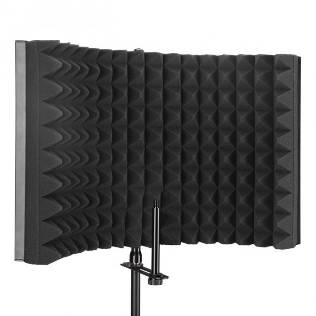 Moses Mshield - akustični zaslon za zagotavljanje čistega signala brez šumov. Odličen za nadomeščanje vokalov, podcastov, glasovnih predvajanj itd. Notranja stena je izdelana iz visokokakovostne akustične pene, ki absorbira hrup, zunanjo steno pa pokriva aluminijasta konstrukcija za varen prevoz in shranjevanje. Zaslon lahko namestite na stojalo za mikrofon.