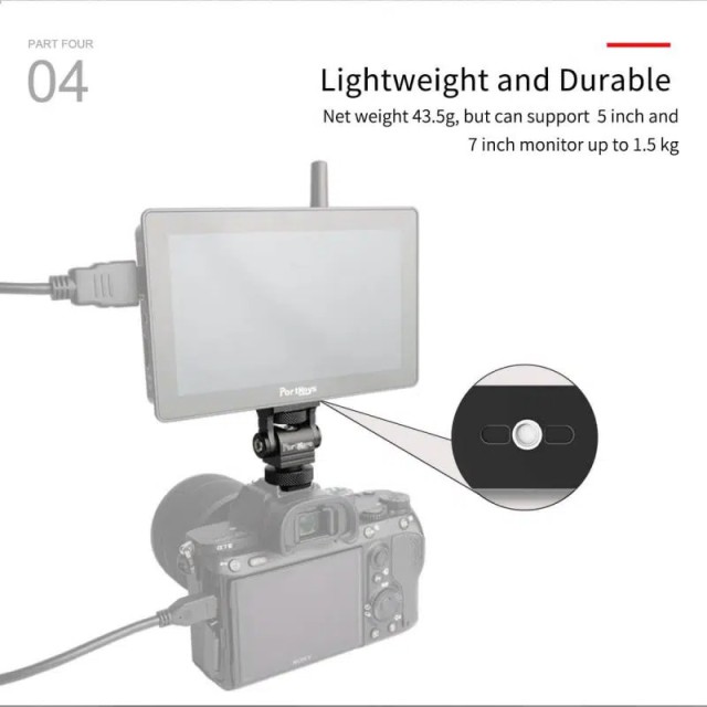 Neto teža 43,5 grama, vendar lahko podpira 5-palčne in 7-palčne monitorje do 1,5 kg (največja koristna obremenitev: 3 kilogrami in 4,9109 unče)