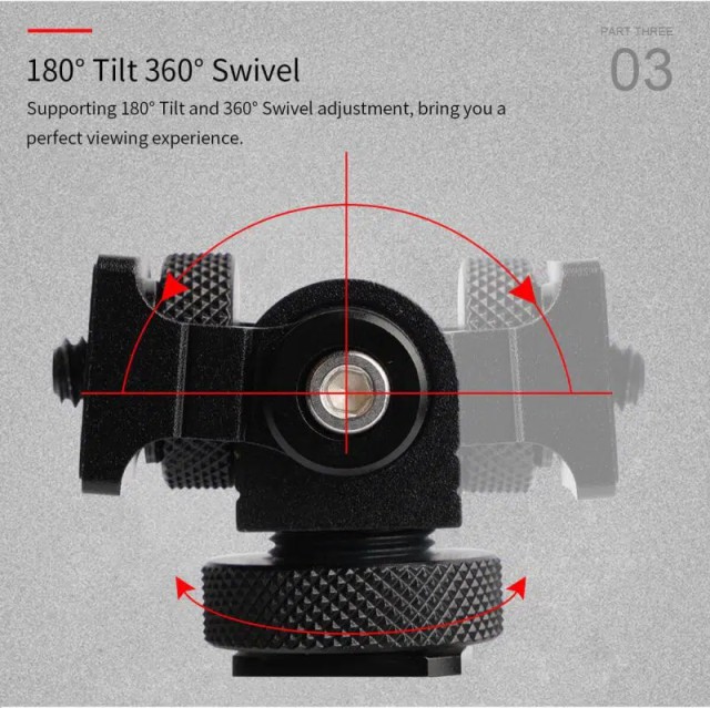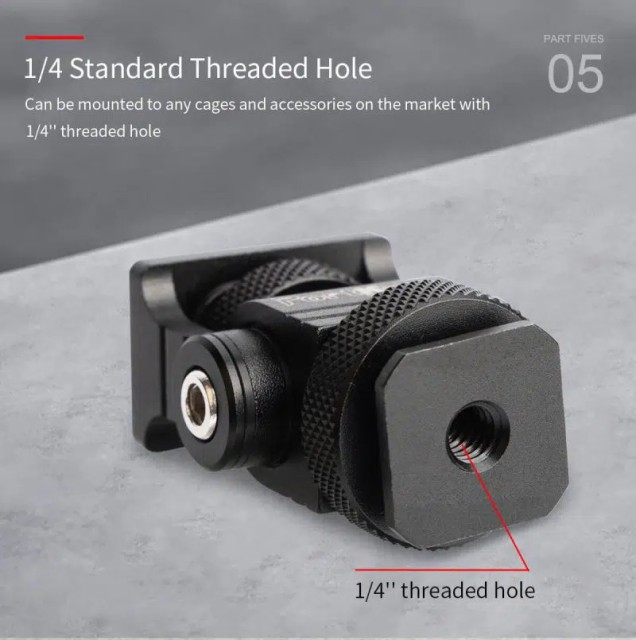 Zaradi standardnega 1/4" navojnega vmesnika ga je mogoče razširiti z vloženimi monitorji, stativi, snemalniki, fotoaparati, mobilnimi telefoni itd.
