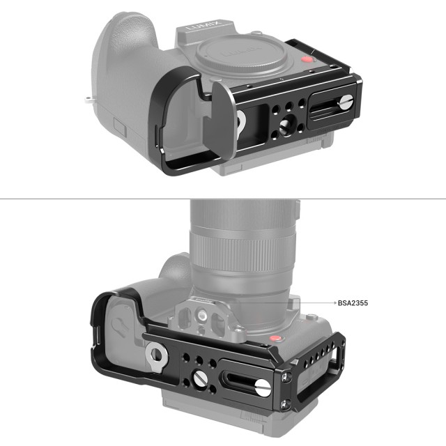 Držalo SmallRig L za Panasonic S1H LCP2655 je modularno zasnovano s prirobnicami proti zasuku, ki preprečujejo zasuk fotoaparata in zagotavljajo udoben oprijem za oporo malčkov. Osnovna in stranska plošča sta združljivi z navojnimi vodili Arca in omogočata navpično ali vodoravno namestitev fotoaparata. Na spodnji del fotoaparata se pritrdi z vijakom 1/4 in ima zatič proti zasuku.
