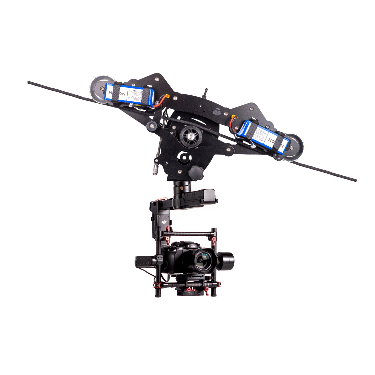 Ta sistem poganjajo dvojne 22,2-voltne baterije, ki zagotavljajo največjo hitrost 70 km/h, hkrati pa ohranjajo gladko in nadzorovano gibanje pri najmanjši hitrosti 16 mm/s. Vodoravna nosilnost 20 kg omogoča namestitev profesionalnih snemalnih naprav, zato je idealen za filmsko produkcijo, športne prenose in dogodke v živo.