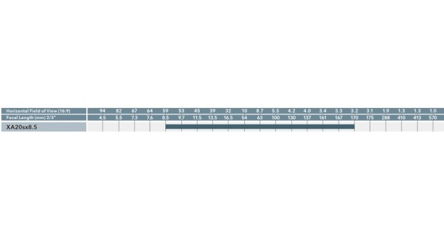 Profesionalni objektiv Fujinon XA20sx8.5BRM HD je teleobjektiv za ENG, zasnovan za 2/3-palčne fotoaparate. Ima 20-kratno povečavo, goriščno razdaljo od 8,5 do 170 mm in relativno zaslonko 1:1,8 od 8,5 do 113 mm ter 1:2,7 pri 170 mm. Zaradi naprednih lastnosti stekla zmanjšuje učinek barvnega obrobljanja, ki nastane, ko objektiv ne uspe izostriti vseh barv v isto točko konvergence. Cenovno najugodnejši objektiv za Blackmagic Design URSA Broadcast.
