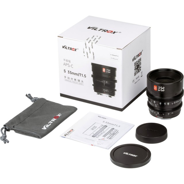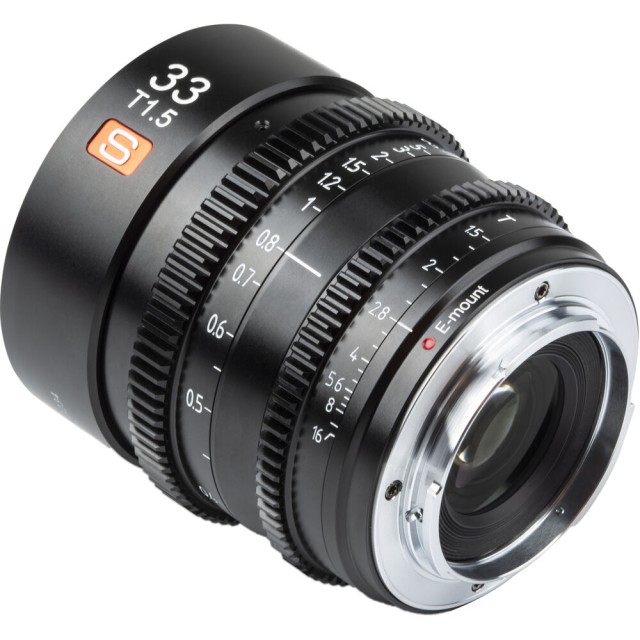 Objektiv Viltrox 33 mm T1.5 Cine z bajonetom Sony E-mount ima hitro zaslonko T1.5 in zagotavlja pokritost filma za kinematografijo za fotoaparate s senzorjem velikosti S35/APS-C tudi pri šibki svetlobi. Večplastni premazi, trdna konstrukcija, pretvorba 0,8 MOD v slogu cine in zaslonka s 14 lopaticami za gladko bokeh dopolnjujejo lastnosti tega kompaktnega objektiva.