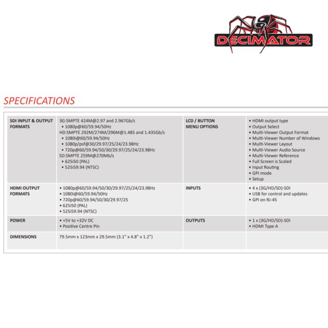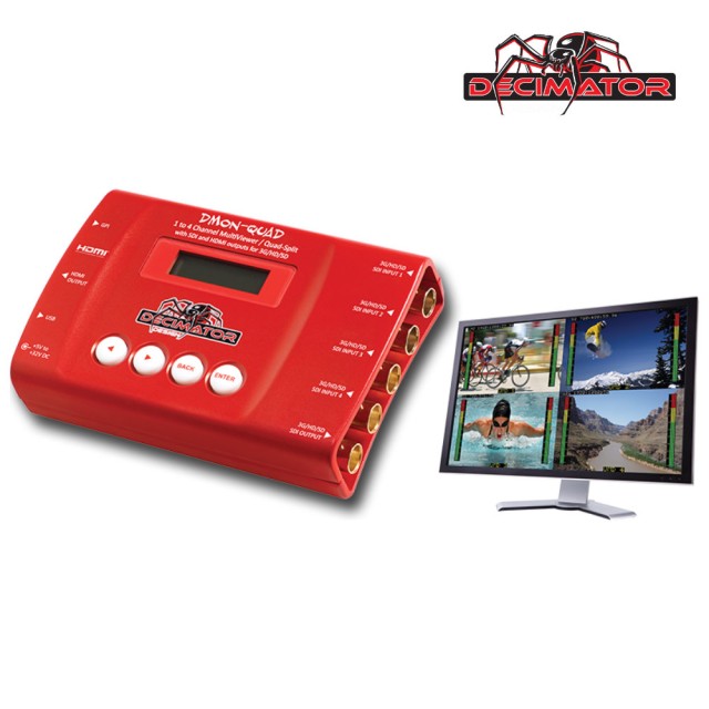 4 x pretvorniki (3G/HD/SD)-SDI v HDMI z večpredstavnostnim prikazovalnikom od 1 do 4, postavitvami po meri in 8-kanalnimi merilniki zvoka