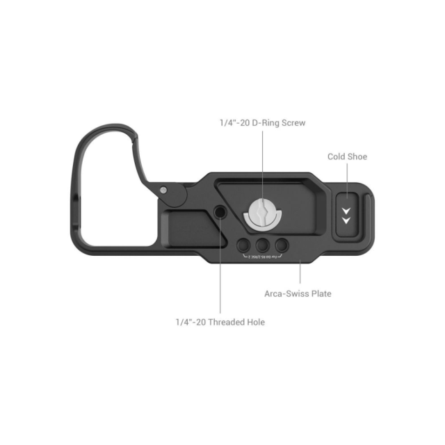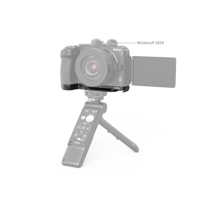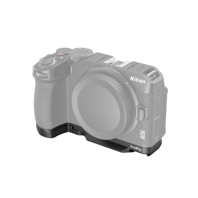 Osnovna plošča SmallRig za Nikon Z 30 3857 je zasnovana tako, da izboljša oprijem in zagotavlja točke za namestitev dodatne opreme. Na spodnji del fotoaparata jo hitro pritrdite z obročastim vijakom 1/4"-20D. Osnovna plošča je opremljena s ploščico za hitro sproščanje Arca-Swiss za stativ Arca-Swiss, kot je 2664; spodnjimi luknjami z navojem 1/4"-20 za ploščico za hitro sproščanje (zgoraj) stabilizatorja DJI RS 2/RSC 2/RS 3/RS 3 Pro ali stativa; in nastavkom Cold Shoe za mikrofon, luč LED itd. Na vratih za baterije je tečajna roka, ki se prilagodi fotoaparatu za udoben oprijem in olajša menjavo baterij.