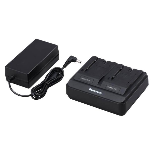 Dvojni polnilec baterij serije AG-VBR (AG-VBR118, AG-VBR89 in AG-VBR59) za fotoaparate AG-DVX200, AJ-PX2700 in AG-CX10. Združljiv tudi z baterijami VW-VBD55 (AG-AC90) in VW-VBG6 (AG-AC160/-130). Največji tok polnjenja 4 A.