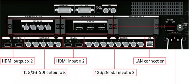 Izbirna I/O kartica za Panasonic AV-UHS500 nad glavo. 3x HDMI 2.0 vhodi, funkcija spremembe ločljivosti za vsak kanal.