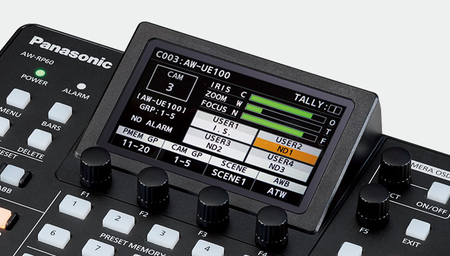 AW-RP60GJ je opremljen s 3,5-tipalčnim zaslonom LCD, ki zagotavlja meni GUI, kjer so potrebne informacije na voljo na prvi pogled za intuitivno in hitro upravljanje fotoaparata.