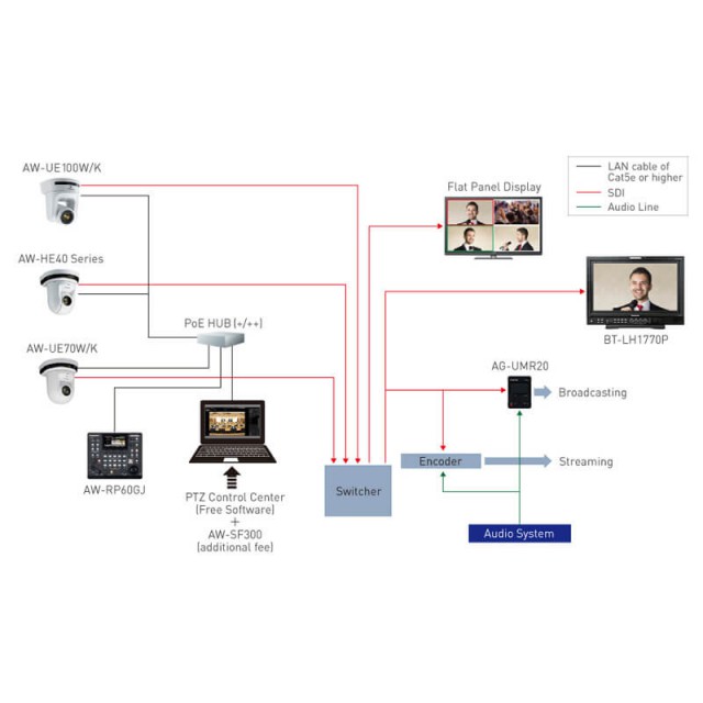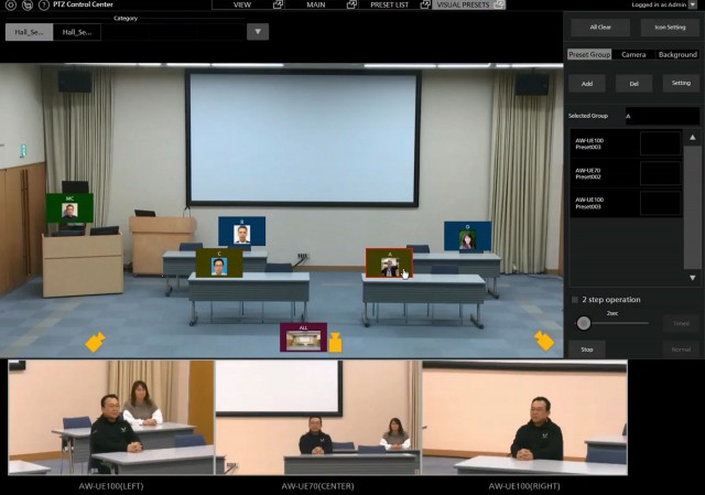 Izbirna dodatna PC aplikacija PTZ Control Center za daljinsko upravljanje Panasonicovih namestitvenih kamer. Omogoča nadzor skupine kamer s preprostimi vizualnimi prednastavitvami: klik na prednastavitev nastavi kamere na določen položaj, kar močno olajša npr. vodenje konferenc, zlasti uporabnikom brez izkušenj s tehnologijo kamer.