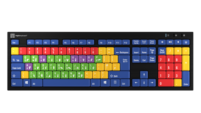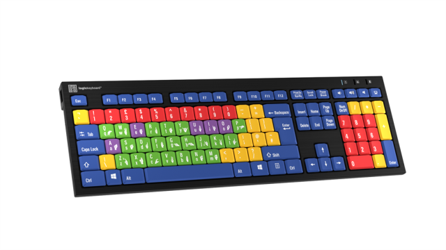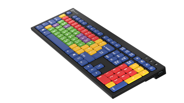 Tanka logična tipkovnica, zasnovana za učenje otrok. Učence v osnovni šoli vpeljite v svet tipkovnice in računalniških spretnosti z otroško učno tipkovnico, izjemnim orodjem, zasnovanim za učenje. Ta tipkovnica z barvno označenimi samoglasniki, soglasniki, številkami in funkcijskimi tipkami pomaga pri seznanjanju uporabnikov z razporeditvijo standardne visokokakovostne tipkovnice.