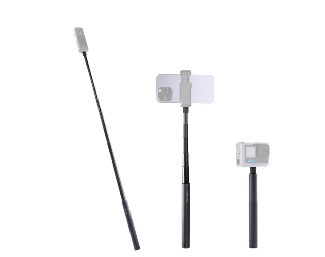 Zlasti v kombinaciji s panoramskimi fotoaparati Insta360 je palica za selfije nevidna na posnetkih, kar jo naredi idealno za zajem immersivnih videov. Palica se varno zaklene s pomočjo mehanizma za zasuk po petih raztegljivih delih, kar zagotavlja stabilnost med uporabo. Z nosilnostjo 349 g lahko udobno podpira večino lahkih fotoaparatov in dodatkov.